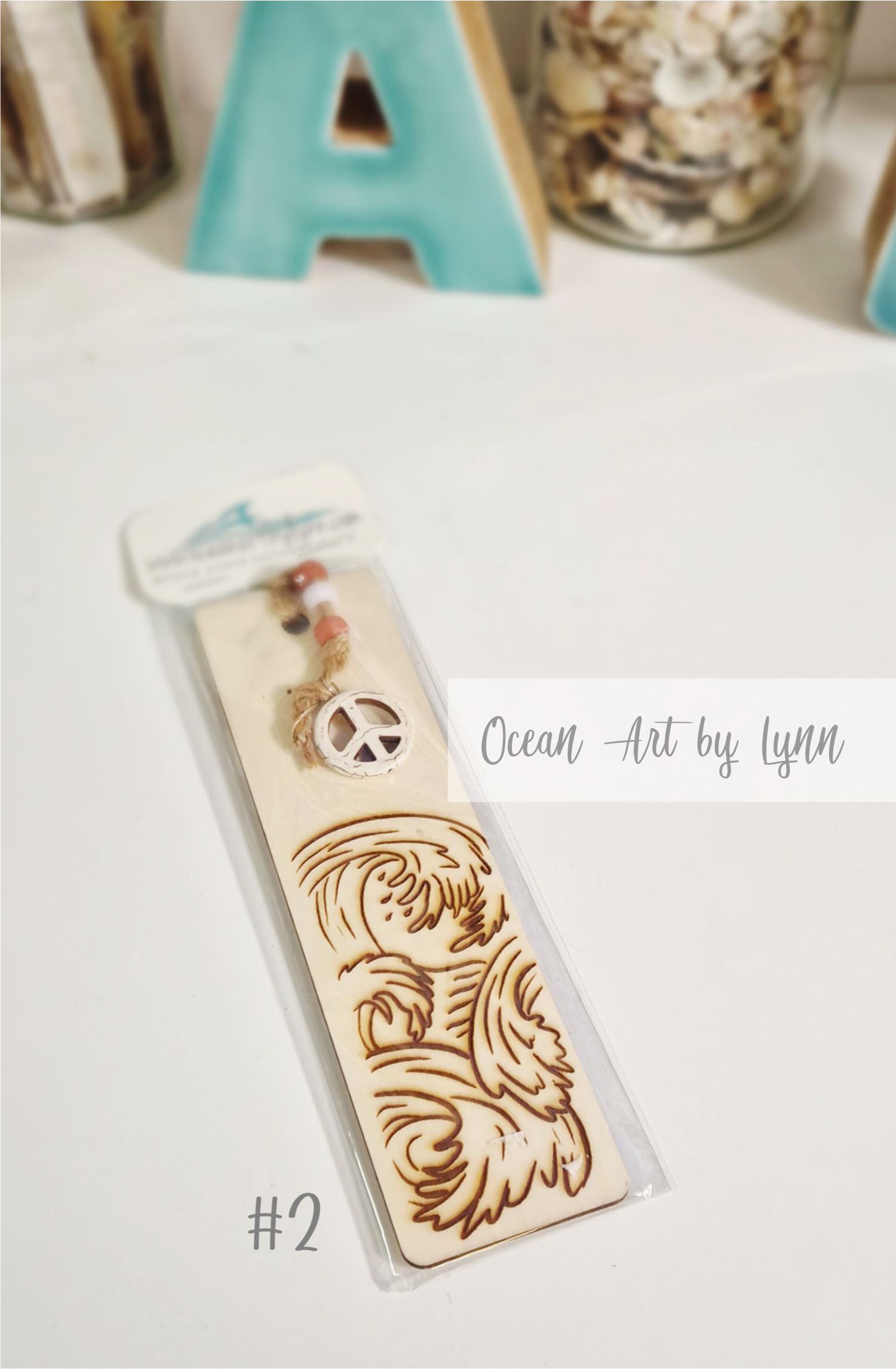 These wooden bookmarks have been engraved with coastal themes. Handmade and unique