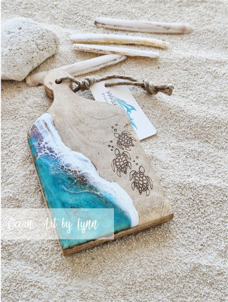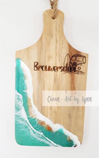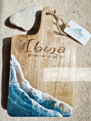 With our new big magic machine we can engrave many materials. Starting with wooden charcutterie boards with coordinates and then completing them with a resin ocean layer. No two are the same. Like the tides, each one is unique. Remembering sandy toes, salty air and special moments.